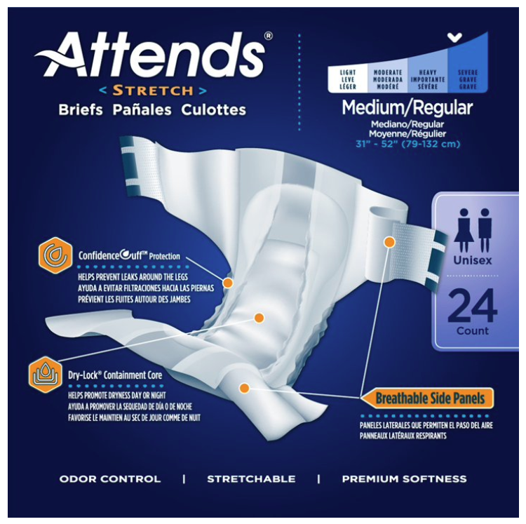The Attends Stretch Briefs offer Ultimate Protection for adult incontinence sufferers who have heavy to severe incontinence.