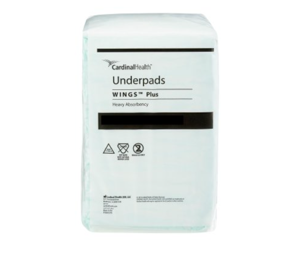 Ensure maximum protection and comfort with the Wings™ Plus Disposable Underpad by Cardinal Health. Measuring a generous 36" x 36", this underpad is designed with a fluff/polymer core that delivers heavy absorbency, effectively locking in moisture and reducing odors. The soft, non-woven topsheet enhances user comfort, while the durable backsheet helps prevent leaks and keeps the pad securely in place. Ideal for use in hospitals, long-term care facilities, or at home, this underpad provides reliable protection for both patients and bedding.