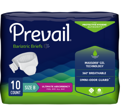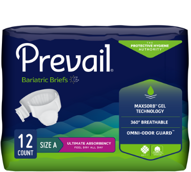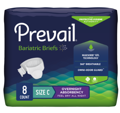 Prevail Bariatric A, B & C Sized Briefs are specially designed to fit the largest of wearers comfortably. They offer ultimate absorbency, which is ideal for heavy bladder leakage.