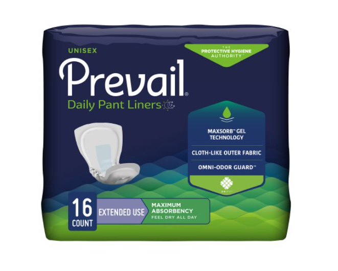 For Light to Heavy Incontinence Protection. Prevail Pant Liners are contoured body-shaped with a Targeted Acquisition Zone for leakage protection and skin dryness. With a full length adhesive strip and Breathable Cloth-like Outer Fabric, Prevail Pant Liners fit comfortably into the wearer's underwear. Prevail® Pant Liners offer a high level of dignity and comfort and are ideal for wearers that are on a toileting program.