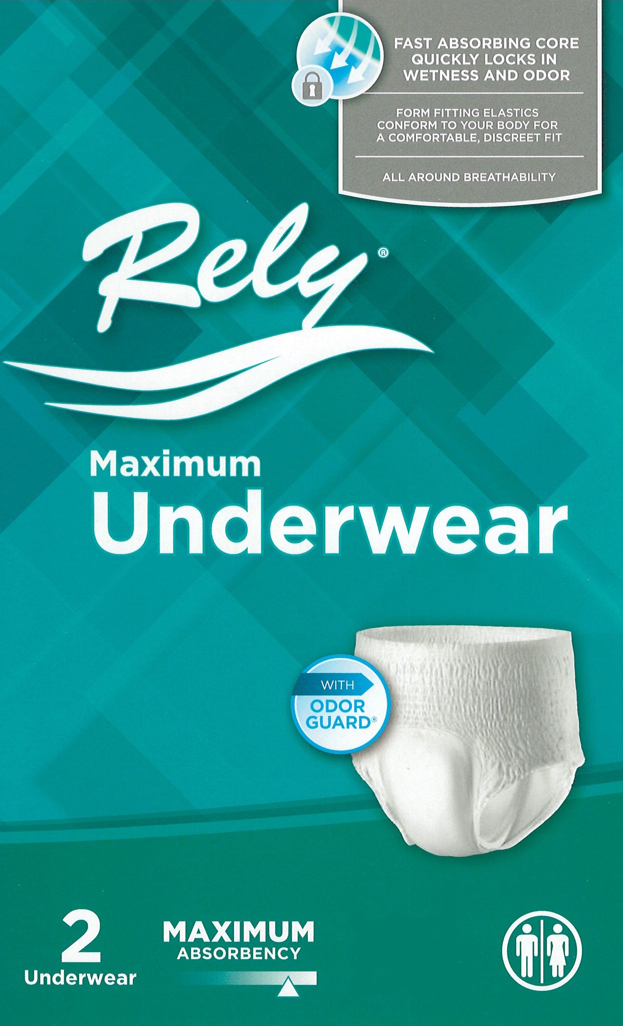 Rely® Maximum Protective Underwear provide the optimum in moderate to heavy incontinence protection in a one piece pull-on undergarment that’s as comfortable as it is effective! Now, MORE absorbent.