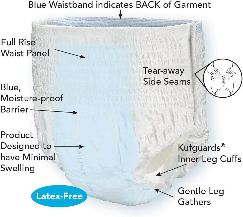 - The blue, moisture-proof barrier and Kufguards® (inner leg cuffs) help contain bowel incontinence, keeping the pool and bathing suit clean.
