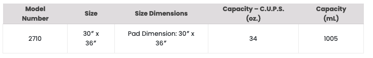 - Maximum absorbency. 34 oz. absorbent capacity.